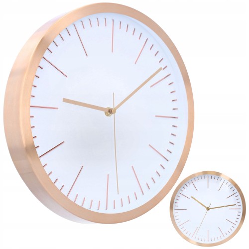 Ten elegancki zegar ścienny z białą tarczą to doskonały dodatek do każdego wnętrza. Wykonany z wysokiej jakości aluminium w kolorze miedzianym, zegar prezentuje się niezwykle stylowo i nowocześnie. Jego precyzyjny mechanizm gwarantuje dokładny pomiar czasu, a praktyczne wymiary 30×30 cm sprawiają, że jest idealny do zawieszenia na większości ścian. Zasilany jedną baterią 1xAA, zegar jest łatwy w obsłudze i nie wymaga dodatkowego źródła zasilania. Dodatkowo, opakowanie zapewnia ochronę zegara podczas transportu, co gwarantuje, że dotrze do Ciebie w nienaruszonym stanie.